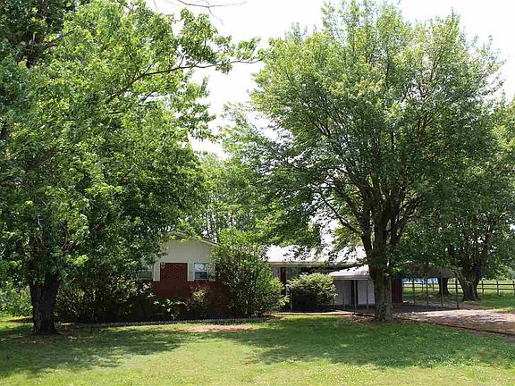 Country Road Take Me HOME!! Beautifully shaded brick home featuring: metal roof, 3 bedrooms, 2 baths, office that could be converted to 4th bedroom/nursery, open floor plan living/kitchen area, 2 car attached garage, carport, large shop with office space, Vinyl Windows, metal roof, and 3 acres!