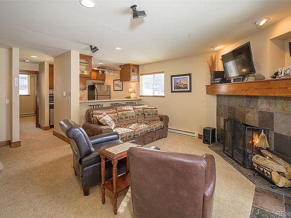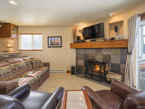 Welcome home! This ground-level end unit features a ton of natural light and a tiled-in wood-burning fireplace and is on the bus route. Keep cozy in the winter with heated floors in the kitchen and bathroom. This one-bedroom welcomes guests with ease and comfort. Comfortably sleeps 7! The bedroom has a private king-size bed, a bunk bed with a trundle, and a pullout couch in the living room. Its owners have loved this unit and never rented it out. It would make the perfect ski getaway with space to store your gear in the ski locker by the front door, closet at the entry, and walk-in closet in the bedroom. Enjoy your coffee on the front porch, or host friends and grill out!