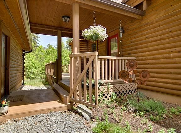 LOVELY & SERENE SOUTHLAND LOG HOME called the "Rockbridge". This home is perfect for year round living or vacations in gated community of Clearwater Creek. Impressive cathedral ceiling w/open concept in Great Room gives you the right recipe for entertaining family in style & comfort. Home is warm & inviting with tons of natural light shining in. Lovely kitchen with SS appliances, extra large counter space for the home chef's prep work. Spacious screened porch and wrap-around decking w/3 sides of access. Two Master Suites allow for endless options. Family room is truly special featuring a one of a kind "British style Pub" w/wet bar & gleaming oak counter top and built-in hutch behind the bar. Play cards, watch a favorite movie or just cozy up to the gas stove hearth. Right outside you'll find a private screened patio with soothing hot tub to relax and rejuvenate. Incredible parking with large 2 car garage and added loft room for extra storage and a cedar closet too.