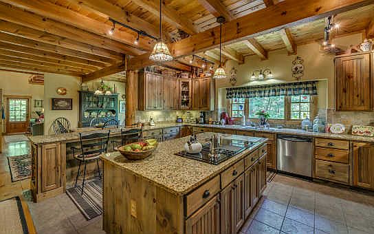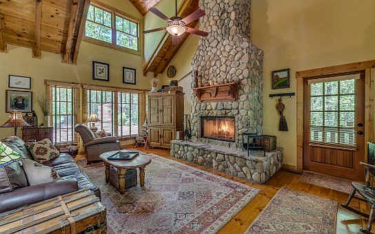 **ADIRONDACK MASTERPIECE**3 BR/2.5 BA on 2 lots--3.41 ac.--offers the finest. Main floor master-en-suite has walls of windows. Master BA has soaking tub & shower. HUGE KIT will please the most exacting chef w/ granite counters, furniture-grade cabinetry, task lighting, double wall oven, island & eat-at granite counter, pantry. Separate DR offers a more upscale dining experience. LR has massive vaulted clngs. w/ floor-to-clng. river rock W/B FP. Powder rm. & laundry round out the 1st fl. Upper level offers 2 add. BRs w/ Jack & Jill BA, plus loft with office/library space. Partially fin. terr. lev. w/ ent. rm., wine closet. All in the upscale community of Riverwalk on the Toccoa, with river access minutes away, pavillion incl. KIT/BA, & canoe/kayak storage.