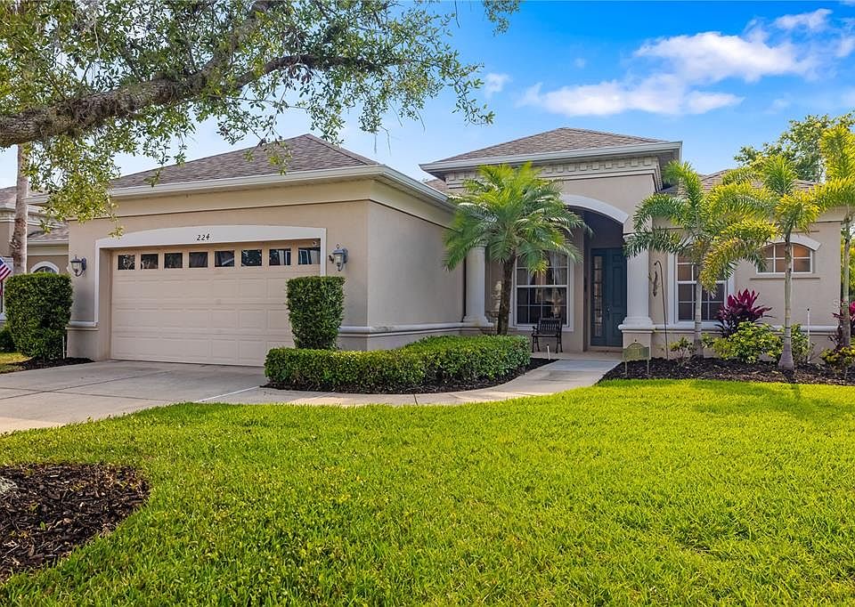 Welcome to Greyhawk Landing, a gated, multigenerational community located in beautiful Florida! This meticulously maintained 4-bedroom, 3-bath pool home sits on a private preserve lot and showcases a new roof, newer A/C, and 2,230 sq. ft. of thoughtfully designed living space. The split-bedroom layout offers a stylish kitchen with wood cabinetry, gas appliances, tile backsplash, and breakfast nook, plus a formal dining room that flows seamlessly into the spacious living area. The primary suite features dual closets, dual vanities, a soaking tub, and direct lanai access. Enjoy peaceful preserve views from the screened pool and spa—perfect for morning coffee or Florida sunsets. Residents of Greyhawk Landing enjoy resort-style amenities including two pools, a fitness center, tennis and pickleball courts, playgrounds, sports fields, walking trails, fishing pier, and bass-stocked ponds—all for only $75/year HOA fee. It is conveniently located near Lakewood Ranch schools, dinning, medical facilities, I75, golf courses, UTC Mall, and the award-winning Gulf beaches.