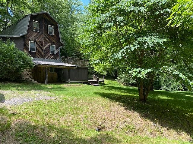 Sitting on the beautiful western side of Yancey county, this rustic mountain getaway promises privacy, wonderful outdoor living, and a cozy cabin to retreat into. With a few upgrades and improvements, this little slice of heaven could be perfect for vacation rentals and rural living alike. Enjoy your summers in the mountains and valleys of the bustling town of Burnsville, North Carolina, where the preserved Appalachian culture is meeting new opportunities at every corner. One-of-a-kind restaurants, a brewery, art galleries, quaint shops, and scenic opportunities lie just a short seven mile drive from the property, allowing it to remain private but still convenient. With a beautiful deck and large lawn, spacious outdoor living is just a few steps away. Restored from an old barn, the house itself carries a personality of rustic charm; wooden siding, unique door knobs, and a gorgeous gambrel roof all work to give this residency a feel all of its own.
