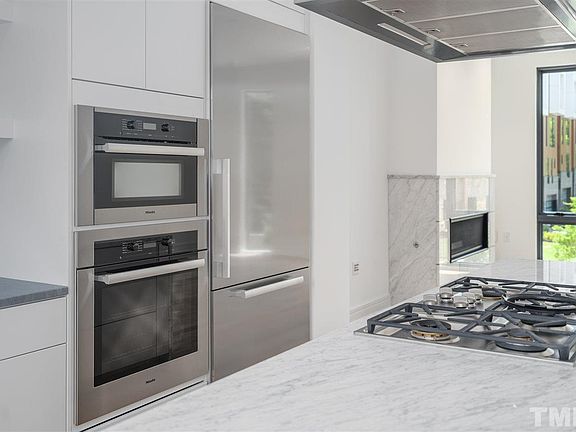Centrally located in the heart of DT Raleigh, this 4 story European Style TH is uniquely yours! The 2nd flr showcases the modern inspired chefs kit. complete w/Miele appl, flr-to-ceiling cabs, 9' quartz island & custom Italian marble backsplash. The living/dining open to the kit. &feat. oversized dbl paned windows & Italian marble gas FP. Top flr owners retreat feat private sitting area w/custom wetbar, covered terrace, walk-in closet w/ Pianca built-ins, & luxurious bath w/Italian marble tile & skylight!