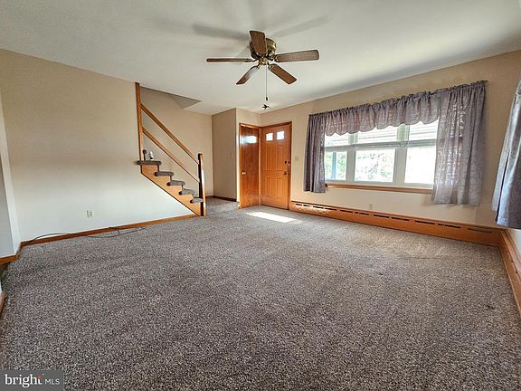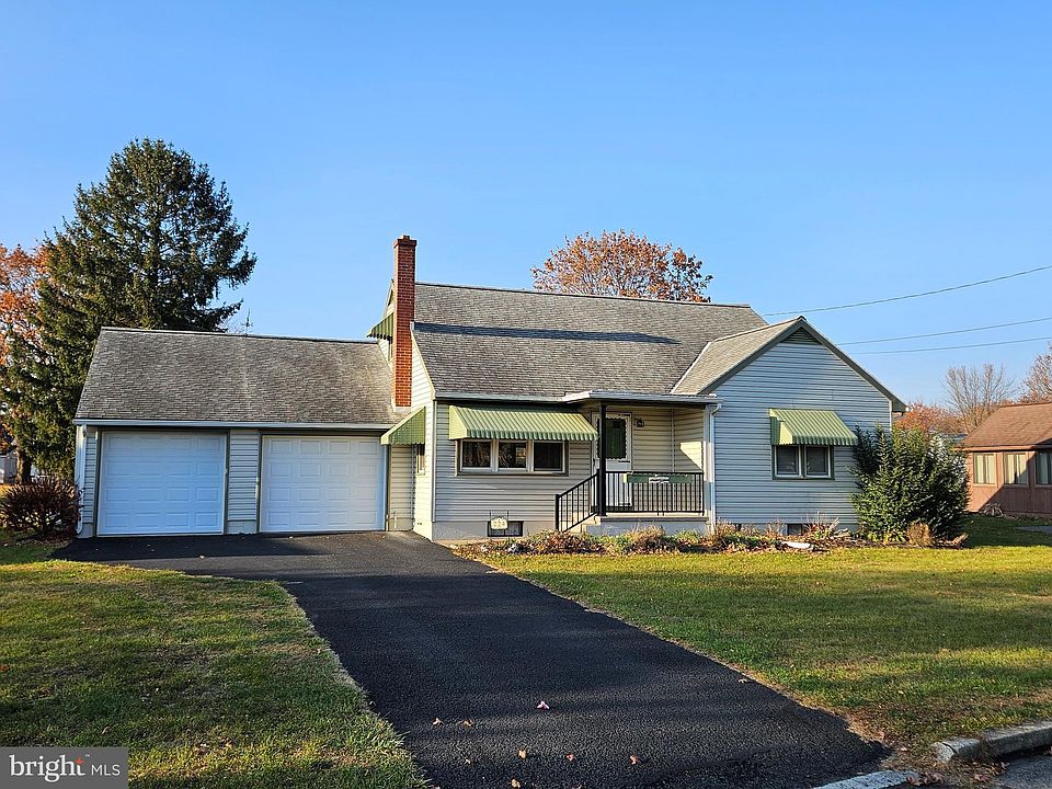 Come see the potential this home has to offer. With minor cosmetic updating, this single 3 BR home can be your home! Situated on a large flat lot, this home includes a large oversized 2 car garage, covered rear patio and front porch. The floor plan includes a large living room with updated wall to wall carpeting, and triple front window with lots of natural light. There is an eat in kitchen with stained wood kitchen cabinets and corian countertops. The main level also includes 2 bedrooms, one presently includes a washer dryer hookup, but this could be relocated to the lower level. The bath was updated with modern fixtures and stall shower. The 2nd floor runs the full width of the home, and may have potential to be 2 rooms. It also includes custom built-in cabinets and drawers. Other updates include, vinyl replacement windows and siding, mini split A/C and heating units, and updated boiler. Immediate possession available, make your appointment today to view this home, before it's sold!