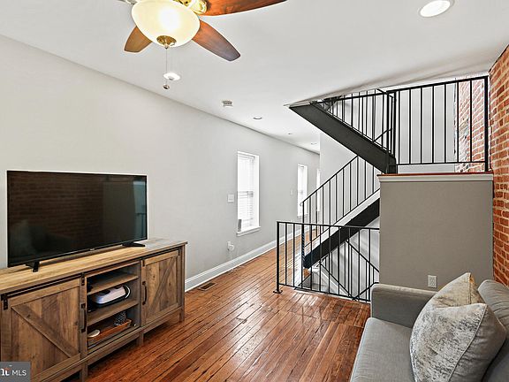 This 3-story Federal Hill End-of Group Townhome with Rear Courtyard and Rooftop Deck is a Must See! One Block from the Soon-to Be Renovated Riverside Park, Enter into the home to the Living Room featuring Gleaming Rustic Hardwood Floors, and Exposed Brick. From the Living Room continue to the Dining Room with hardwood flooring, exposed brick, and plenty of windows to let in Natural Light. The Gourmet Kitchen features Granite counters, Gas cooking, Stainless steel appliances, Recessed Lighting and Breakfast Bar with pendant lighting. Also on this level is a Half Bath and access to the Rear Courtyard Patio. The Upper Level features the Primary Bedroom with Hardwood Flooring, Plus a Full Bath with Jetted Garden Tub/Shower combination. Continue to the second Bedroom with Hardwood Flooring, Exposed Brick and Ceiling Fan plus the Second Full Bath with Custom Tile Shower. The Lower-Level Features Bedroom 3 or a Recreation Room with Carpeting. Plus, a third Full Bath with Stall Shower and Custom tilework. Each Full Bath includes a touch pad to regulate the on/off & temperature of the floor! Updates to this home include a New Roof-2019, New HVAC Unit in 2022 and New Washer/Dryer 2020! This Home is Walking Distance to Restaurants, Bars, Riverside Park and all that City Living Has to Offer!