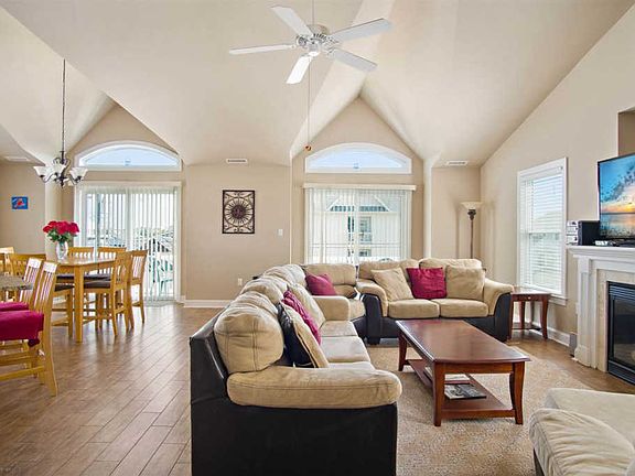 View the Summer Fireworks right from your private deck of this spacious, furnished 2nd floor condo. This home boasts 4 bedrooms, 2 baths, 4-car parking and is move in ready. Enjoy the open-concept great room, ideal for entertaining. The dining room, living room and kitchen area includes 2 sliders to the large outdoor deck. The great room features vaulted ceilings, gas fireplace, recessed lighting, and stunning Dura Wood ceramic wood plank tile flooring with custom chevron design in dining area. The kitchen includes granite countertops, stainless steel appliances, large center island with seating, pantry, and upscale fixtures. The master suite offers double closets and full bath. Enjoy 3 additional roomy and bright bedrooms, including one with access to an additional private deck. The 3-car attached garage (front to back) provides secure parking, with ample storage space for all your sports and beach gear. Upgraded design includes the luxury of an indoor stairwell, extra wide hallways, large attic for storage, laundry room, ceiling fans throughout, an outdoor cedar shower, and an additional parking space in the driveway. Situated just 1.5 blocks from the beach for prime views, beach breezes and access to all of Wildwood's fabulous amenities!