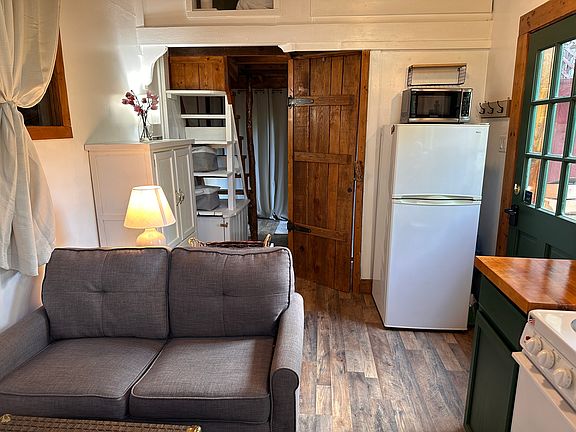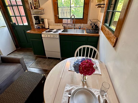 The Smoky Mountain Cabin is a furnished tiny house with loft. This quiet sanctuary is perfect for one person or a couple. Great light, peaceful environment where you can hear the rushing creek and watch it from your kitchen window. Fully furnished tiny house was completely remodeled in 2023 so everything inside is new! It's located in walking distance to downtown Bryson City, the train depot and lots of bars and restaurants. Located directly across the street from Deep Creek, you will love the enclosed yard with gorgeous views of the surrounding mountains. It is located on a hillside so driveway is steep. 1 small dog ok with $250 pet deposit. Each tenant must send application and pass background check ($55). No more than 2 tenants. NO CATS. . Owner takes care of land and yard maintenance. Tenant pays all utilities. 6 month lease then month to month.
