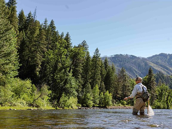 The Let'er Fly Fishing Lodge on the South Fork of the Boise River is a classic Idaho mountain getaway between Sun Valley and Idaho City. Sitting on 11 acres, this FULLY FURNISHED riverfront lodge has the character of the mountain with the comfort of a flannel shirt; built inside and out. Enjoy the river views on the large outdoor entertainment deck areas in a lounge chair, in the hot tub, grilling on the BBQ or on your own private beach area. Fly fishing frontage with more backcountry to recreate on adjacent public lands. The lodge is currently operating as a family vacation home and a successful Airbnb (Guest Favorite) for travelers recreating and exploring the area. Accommodates up to 16 people. The Airbnb opportunity makes the Let'er Fly Fishing Lodge a great investment for an additional income stream or a 1031 Exchange candidate. Short distance to Anderson Ranch Reservoir, hot springs, hiking/utv/atv trails, local restaurants, small grocery store and gas station in Pine or Featherville.