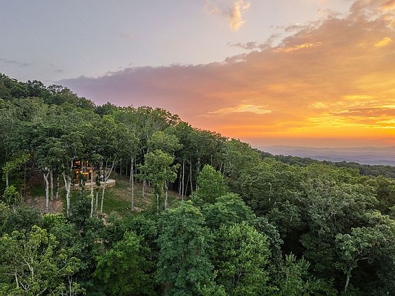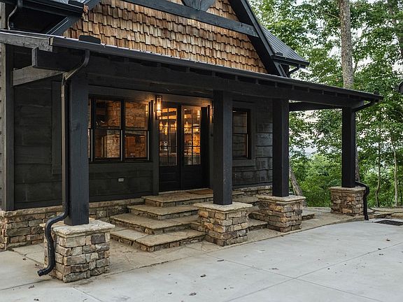 An ethereal mountain retreat -- welcome to Stags Manor! Overlooking panoramic layered mountain views, lush U.S. National Forestry land, and some of the best sunsets in the North Georgia Mountains! This rustic-contemporary blend chalet beckons luxurious mountain living with a gourmet kitchen, VIKING kitchen appliances, custom concrete countertops, custom stone masonry work, chef's kitchen eat-in island and large open-concept dining area, comfortable living room, and the focal point of the main level: a four-sided fireplace! Glass sliders open up to the most luxurious covered deck with a custom linear fire table, outdoor grilling area, comfortable seating, and views across the horizon. Main house is complete with an upstairs primary bedroom with in-room laundry, a large coffee/wine bar, office, and ample custom storage. Terrace level has a large bunk room, fireplace, large bathroom, and walk-out sliders to a large patio with a jacuzzi and gaming area. Two car finished garage has an additional full bedroom ensuite above with kitchenette. Fully-furnished with high-end furnishings and decor, minutes away from some of the area's most sought-after hiking and biking trails, the Toccoa River, Lake Blue Ridge -- the outdoor world is your oyster! Concrete driveway, designer lighting, and a finishes list that far exceeds the "mountain norm!" Whether a full-time, second home, or rental retreat, this unique and luxurious lodge won't last long. Call today for an exclusive tour.