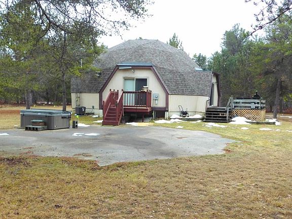 A unique opportunity to own a dome home on 10 acres which borders over 1,000 acres of state and federal forest! This 2 bedroom, 1 bath home (with loft) is a great place for living, vacationing or hunting! The unusual shape of the home combined with the perfect remote location also makes it a great place for an Airbnb! You can walk on more than a mile of hiking trails without ever having to leave your own property! The upstairs loft is huge and currently is setup as a sleeping space for 7 people. The home comes mostly furnished (the hot tub stays!) and has lots of updates: a new roof in 2021; new forced air propane furnace and A/C in 2022; and a new well pump in 2024. Due to the unusual angles within the home, getting exact room dimensions is difficult: it is suggested that the buyers do their own measuring. The home has had some settling issues and most of the damage has been repaired but, there is still a fair amount of cosmetic damage to the drywall within the home. No further settling has been observed since 2016. The asking price of the home reflects the expected repair costs.