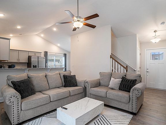 Modern finishesCorner lotStainless steel appliancesCathedral ceilingsLarge covered back porchLvp flooringGranite countertops