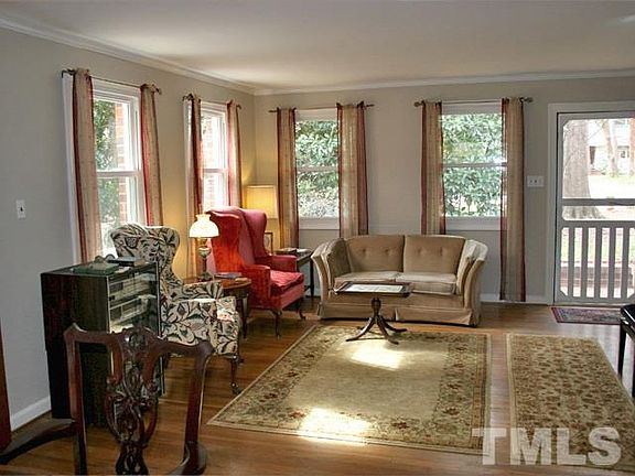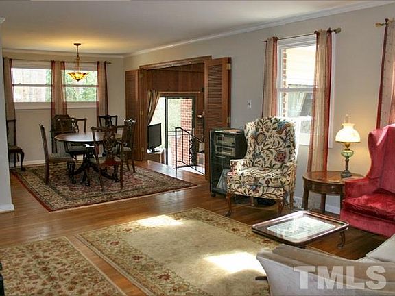 This tasteful home boasts three bedrooms, two and a half baths and a single level floor plan with sunken family room, breakfast area and master bedroom. It is also conveniently located close to UNC, University Place, Whole Foods, Eastgate and main travel corridors. The home is located on a large flat lot with room for gardening and play. Several spacious patios and mature landscaping make for enjoyable time spent outdoors. Inside you will find hardwood flooring in much of the home. A generously sized kitchen includes spacious quartz counters, ample cabinetry and a walk in pantry. The adjoining breakfast room, with its cathedral ceiling, is accessed by a step and many windows allow natural light to stream into the space. The living room, family room and dining area connect making for ease of movement when time is spent with friends and family. A large wood burning fireplace is found in the family room, this room is accessed by three steps. The largest of the patios can be accessed from the family room or breakfast area. The master suite, accessed by a step, has great architectural details, a walk in closet, a cathedral ceiling and generously sized windows that overlook the back garden. An office space connects the master bedroom to the bath. There are two additional bedrooms. One of these bedrooms has a built in wardrobe and a loft area. The home has replacement windows and the kitchen and master suite additions were architect designed. This home has been well kept, boasts great detail and has a truly livable floor plan.