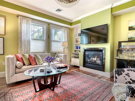 This two bedroom, two bathroom contemporary condominium unit at Village Station Residences has two deeded garage parking spaces. Single floor, accessible living. Easy walk to Roslindale Village and close to Forest Hills and the Arboretum. Open concept with 9 ft ceilings throughout and coffered ceilings in living and dining room. Gas fireplace, crown molding and balcony. The kitchen features shaker cherry cabinets with granite counters. Jenn Air stainless-steel appliances in kitchen with breakfast bar. The master bedroom has walk-in closet, second closet and en suite bathroom with spa shower, double sinks and radiant heated floors. Nice sized second bedroom ideal for combination office/guest bedroom. Great energy efficient heating and cooling systems, on-demand tankless hot-water system and in-unit laundry. Tiger-wood flooring in living areas with bamboo floors in bedrooms. Professionally managed, well maintained, elevator building with solid finances.