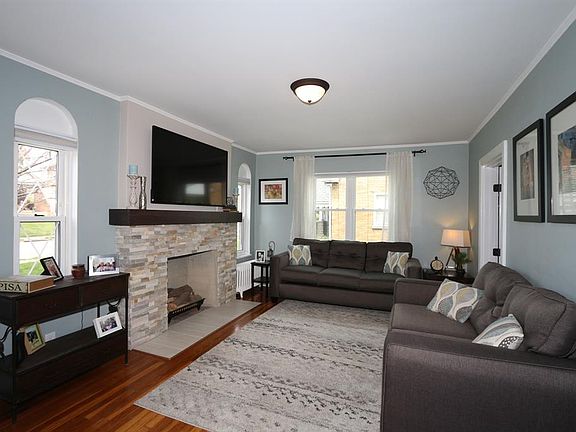 Sought after BONNIE LESLIE SUB offers this charming Ginger Bread style house. 3-4 br, 1.5 ba, Hardwood flrs thruout most of house. Stylish updated kit w/stainless steel appls, back splash, washer & dryer. 1st fl br could be study and addl 9x8 room upstairs could be study, walk-in closet or small nursery. Master ste w/2 closets. updated baths, walkout bsmt. Wood burning FP. Beautiful lg deck