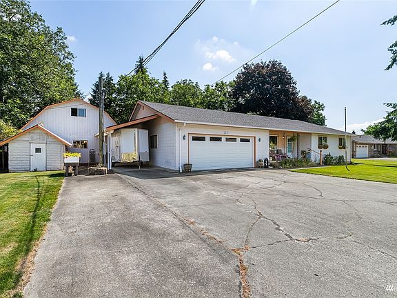 Tastefully updated large rambler in the heart of Everson! Quietly located at the end of a private and paved dead end street on a spacious nearly half an acre lot, this 2,148 square foot home has everything you need AND want. Home features 4 spacious bedrooms including a primary suite, 2.5 baths, and an open concept kitchen/living/dining area. Recently new roof, vinyl windows, garage door, and cozy gas fireplace in the living room. Newer LED lighting and laminate floors. 2 car garage, 1 car carport, storage shed and a large barn with a huge loft! Fully fenced and well-manicured backyard with mature landscaping. Must see to truly appreciate! NOT in the floodplain!