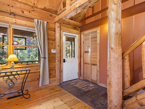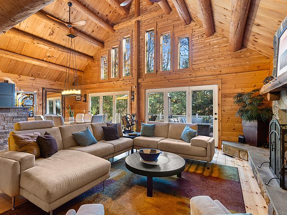 Escape to your perfect retreat in this charming log home just minutes from the lively coastal scenes of Wells and Ogunquit beaches. Step onto a large, welcoming front porch that sets the tone for relaxation, or unwind in the hot tub on the newly expanded deck, ideal for hosting friends or simply basking in the natural beauty around you. The heart of the home centers around a grand wood-burning fireplace, filling the open living area with warmth and charm, while double sliders flood the space with natural light and bring the outdoors in.