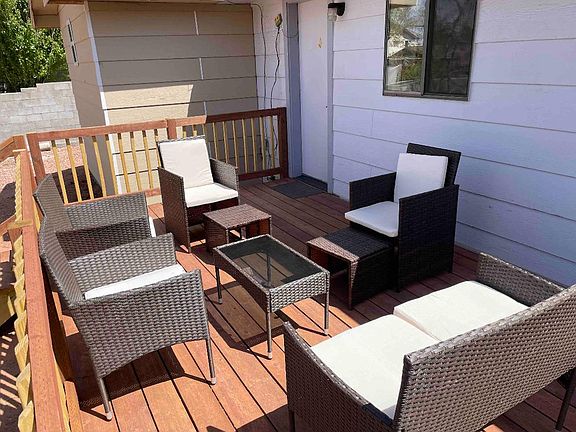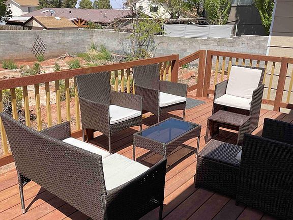 FULLY FURNISHED. Delightful rental. Stick-built home, not mobile home. The home has three bedrooms. Updated master bedroom with brand new en suite bath. Two outside buildings: workshop/studio and a shed. Two additional bedrooms with queen beds in each. Well built, updated, easy to care for, well-insulated. FULLY FURNISHED WITH ALL AMENITIES - BRAND NEW DECK - BRAND NEW Exterior Paint, Lighting, Shutters Near Rim Trail for a hike. Amazing views. Right in town with groceries, restaurants, schools, walkable. Airport 1/2 mile away. 5 minutes to Antelope Canyon, Horseshoe Bend, Lake Powell. 2 minutes to hospital, schools. Beautiful art and decor, lovely BRAND NEW deck. Off-street driveway parking for 2 vehicles plus boat or 3rd vehicle. Super quiet neighborhood. This awesome home in Page AZ is available June 1, 2025
