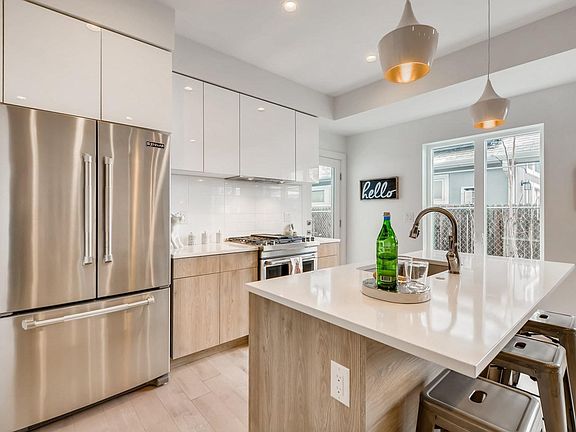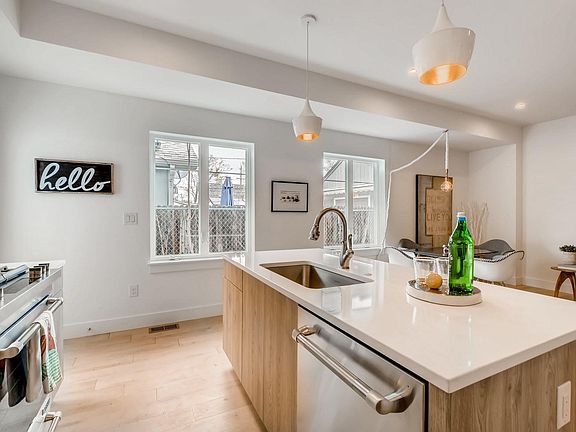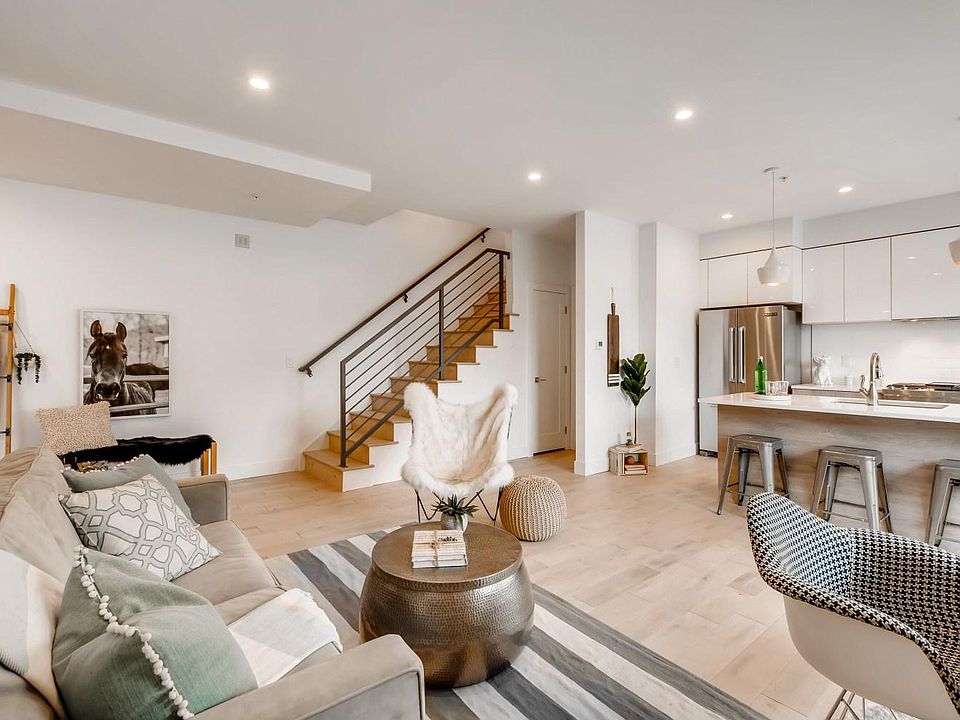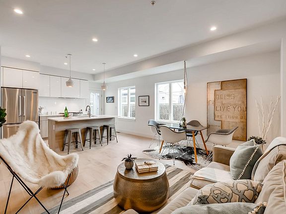 This bright, open townhome with high ceilings is brand new and ready to move in. The finishes far exceed anything else you'll see in this price range. Both bedrooms are large enough for real adult humans. Birch floors run throughout the main level, which has a great room, 1 bedroom and a 3/4 bath. The kitchen design is clean and contemporary, with solid quartz counters and stainless appliances including a french door fridge and gas range. The master suite is on the second level and leads up to the private rooftop deck, with fantastic city and mountain views. The attached one-car garage has high ceilings for additional storage. Baker West features only six remarkably designed townhouses, carefully constructed in a fantastic location - walking distance from both the Santa Fe Arts District and the shops and restaurants on South Broadway. No HOA. Taxes TBD.