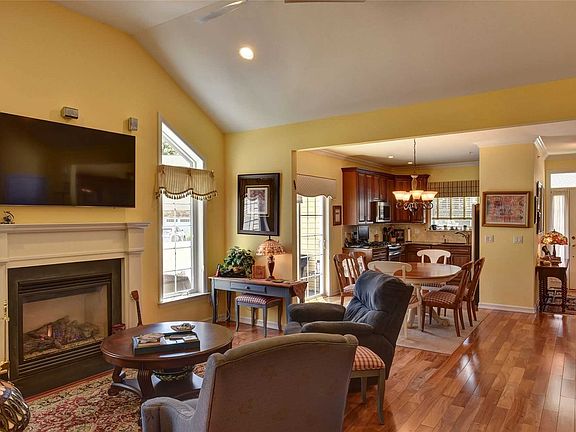GREAT LOCATION on the Pond this END unit ""ASHBY"" Ranch Model has an Open Floor Plan with Gleaming Hardwood Flrs.,Cathedral Ceilings, Crown Moldings. Kitchen has SS Appl.,42"" Dark Cherry Cabinets, Granite. The main Bedroom has a walk-in closet and its own spacious Bath w/ a custom vanity ,Ceramic flrs & walk-in Shower. Plus a Guest Bdrm & Bath. Included is a Full Finished Bsmnt & Half Bath. Outside you have 2 patios for your enjoyment. Resort Amenities - include a Clubhouse, Pool,Tennis,Bocci what more could you want. Hurry this is the only ""Ashby"" model for sale!