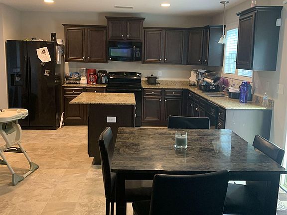 - RoomKitchenFeatures: Granite Counters, Kitchen Island, Recessed Lighting, Eat-in Kitchen, Floors-Vinyl, Cabinets-Painted