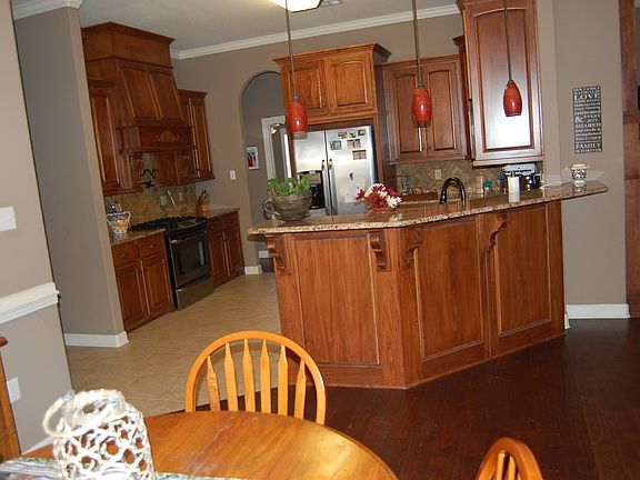 Beautiful home on quiet culdesac area with little traffic! Hardwood flooring in living and sun room area with gorgeous stained fireplace/TV center. Granite counters in custom kitchen accented by stone backsplash, gas stove, pot filler and "to die for" walk in pantry! Even coffee center! Split bedroom plan with separate guest room. Laundry room has built in coat rack/mud area for after school backpacks and sports bags! Don't forget the staircase in the garage for attic access! Pergola, too.