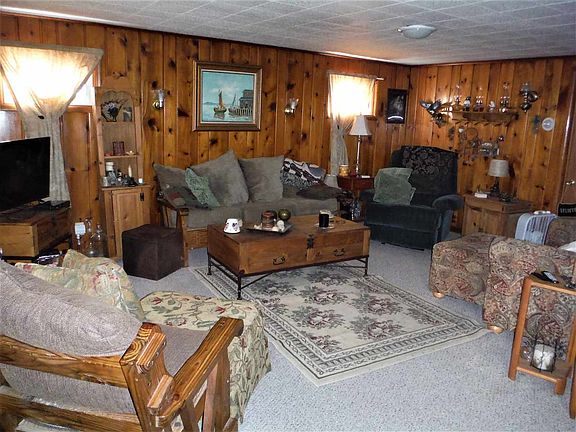 3 Bedroom 1 bath home with attached 2 car garage! Home offers a rustic knotty pine interior, glassed in front porch and partial basement. Great starter home or vacation getaway.