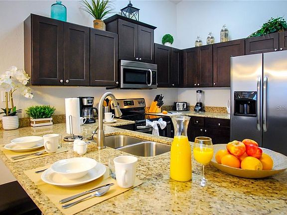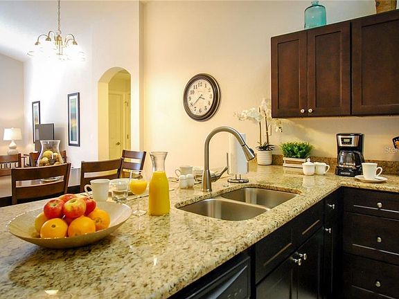 ***MULTIPLE OFFERS-HIGHEST AND BEST OFFERS DEADLINE FEBRUARY 14, 4PM***GATED Community**TURN-KEY FULLY FURNISHED**PRIVATE POOL** NO REAR NEIGHBORS**FULLY UPDATED-GRANITE & WOOD CABINETS KITCHEN AND BATHS**This gorgeous, pristine condition home has been professionally updated and decorated. Enjoy the natrual light with this open floorplan where you can enjoy family time and entertaining. UPGRADED LARGE TILE floors in the kitchen, living room, foyer, hallways and bathrooms. The Bedrooms have soft UPGRADED PADDING & SHAW CARPET and are split for privacy. As you enter you will immediately see the like new condition and value of this home. There are 2 Master Bedroom Suites boasting a KING BED and walk in closet as well as their own private bathrooms, each with double vanity sinks, solid wood cabinetry, a spacious garden tub and separate glass enclosed shower and wc. Bedrooms 3 and 4 are located on the opposite side of the home with their own hallway, shared bathroom and 2 hallway linen closets. There are Glass sliding doors leading to the Private Screened In Pool from the Living Room and the Main Master Bedroom. There is plenty of privacy at the pool area and ample comfortable seating both under the covered lanai and around the heated pool in the Florida Sunshine. Make this your vacation home or your forever home today! Professional Property Management Available upon Request.