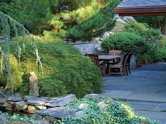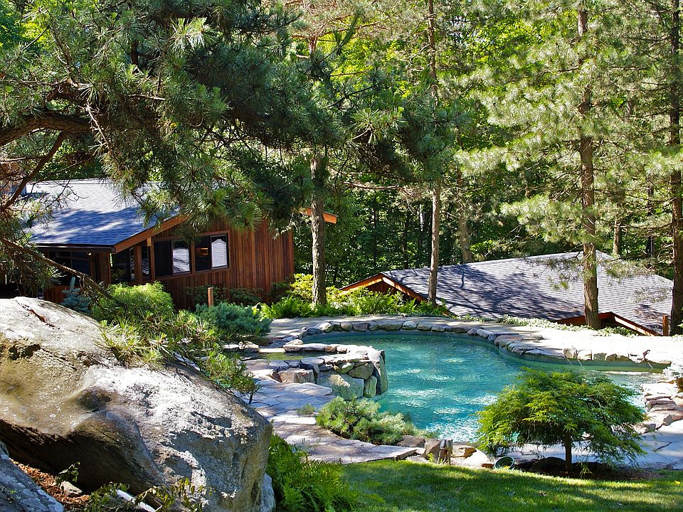 Dragon Rock, state-of-the-art Modern home designed by renowned architect Edwin Langerfeld. Set & surrounded by protective rock outcroppings, natural waterfall to Koi pond; Glen Gate pool/spa all enveloped by beautiful specimen flowering gardens. Premium Redwood & glass home, remodeled with influence of architect Sarah Susanka- flooded with light set privately on 2 magnif acres with huge level yard. Convenient to town & trains(38min to NYC). A secluded dream for weekend/year round enjoyment!