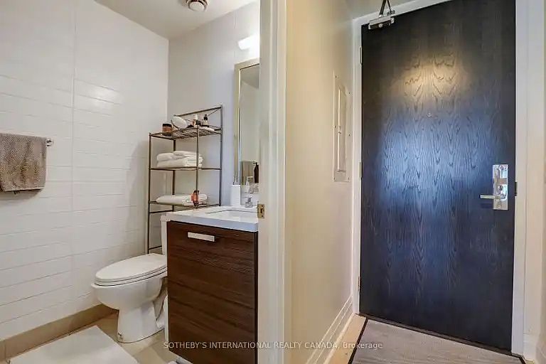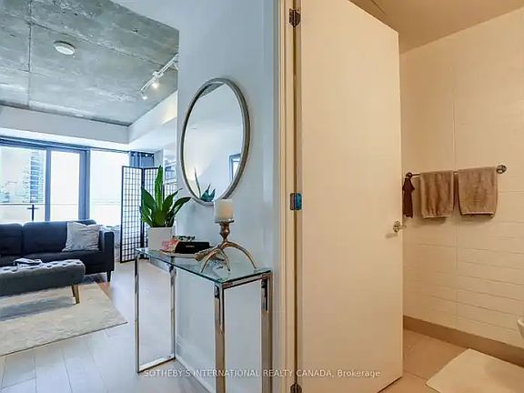 Welcome to Suite 1806 at 224 King St W, a contemporary pied-a-terre in one of King Wests most sought-after buildings, ideally located just a short walk from the Financial District and St. Andrew Subway Station, and steps from the Royal Alexandra Theatre, Roy Thomson Hall, and the PATH. This bright, sunny south-facing suite boasts floor-to-ceiling windows and exposed concrete ceilings, flooding the space with natural light and offering stunning city views. Enjoy the warmth of wide-plank hardwood floorsand a modern European kitchen equipped with integrated appliances and the sought-after gas-burning cooktop. The open-concept layout flows effortlessly, providing distinct areas for living, dining, and sleeping. Step out onto the oversized balcony with a gas BBQ hookup and take in vibrant views of the city skyline. Residents of Theatre Park enjoy renowned amenities, including a rooftop outdoor pool with panoramic city views, a fully equipped gym, and inviting terraces, ideal for relaxing or entertaining. All this, nestled in the vibrant heart of downtown, surrounded by theatres, concert halls, fine dining, shops, and nightlife. This vibrant neighbourhood offers the best of Queen West's art, fashion, music, and culture. It's just a short stroll or quick TTC ride to Union Station for easy city access, and when it's time to travel, nearby Billy Bishop Airport provides convenient flights in and out of the city.