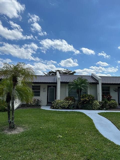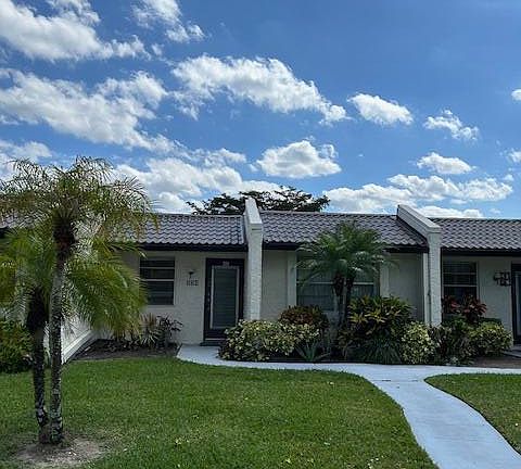 Come Discover Golden Lakes Village. 24/7 guard gated active 55+ community. (one occupant must be 55+) Parking near your front door at this lovely 2/2 Villa, screened patio, water views, full size W/D & all tile floors. Full time social director schedules shows, trips, movies, water aerobics and many special interest clubs. Close to shopping and appox 15 min to downtown WPB and the Kravis Center for Performing Arts. Clubhouse offers cafe, exercise rm, card room, sauna, hot tub, billiards , library, pickleball, tennis and so much more. Maintenance covers Comcast Xfinity cable, INTERNET, water, bldg insur, & courtesy bus to grocery, shopping 2 days a wk. 27/7 guard gated. Come see and compare.