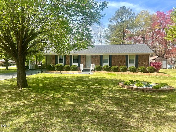 3 bedroom all brick ranch home on landscaped .39 acre lot. New roof installed in 2024! HVAC system is 1 year old. 3 detached sheds and additional outdoor storage attached to the home. Large carport area. Large 23ft x 12ft back deck overlooking well maintained and level back yard that is perfect for entertaining. Perfect location minutes to Hwy 70, Hwy 40 and White Oak shopping area. Less than 15 minutes to downtown Raleigh. Hard to find single family home under $300K!