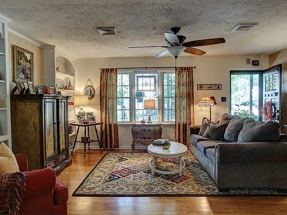 Welcome to this charming ranch home in a wonderful neighborhood. Take a walk down the vintage brick walkway through the home's front door to admire the open concept living, dining and kitchen perfect for entertaining. Rich bamboo hardwoods and custom bookcases add extra charm to this space. The kitchen has a warm feel and offers all stainless steel appliances with an adjacent laundry room.The dining room leads to an open deck to enjoy your morning coffee and admire the sounds of the bubbling pond or perhaps refresh in the outside shower. Upon returning inside you will find a master bedroom with a half bath and 2 additional bedrooms and a full tile bath. The home features all Anderson windows and a new HVAC system with natural gas for comfort. Additionally there is a 2 car garage with a full attic and shed for all your storage needs.