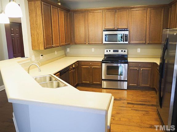 Location, Location, Location! Stunning all brick townhome in Amberly with numerous amenities! Neighborhood has a clubhouse fitness center, pool, kids playground and more! Bright and open, features 5" hardwoods throughout first floor, gas fireplace, surround sound, and large kitchen with stainless steel appliances, maple cabinets. Luxurious master suite with huge walk-in closet and separate garden tub and shower. Close to shopping and dining, easy access to RTP, I-540, NC-55, and RDU.