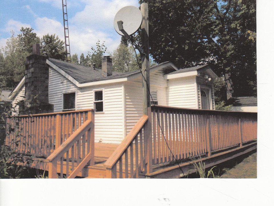 Affordable river front living. This cozy cabin with spacious living area with fireplace and wrap-around deck is just waiting for a new owner. Fix it up and call it home! Private, deep lot with 50' of T.B. River frontage. Catch a fish under the shade tree by the river bank or take a paddle boat ride! Possible LC terms.