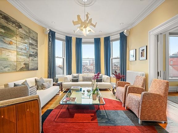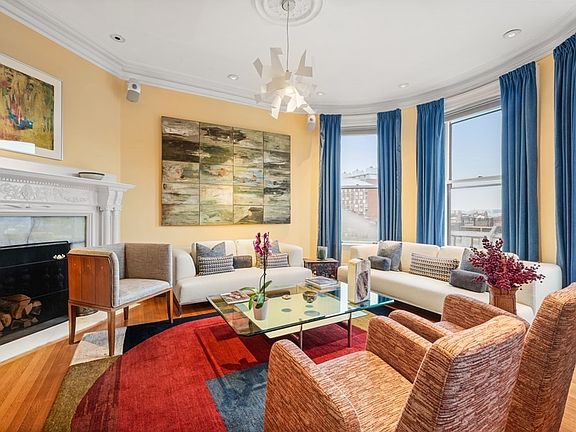 Beautiful 3 bedroom penthouse iconic 1890’s Back Bay building. Gracious city home with flexible floor plan. Large eat-in kitchen with gas cooking and excellent storage. Views of Marlborough Street from the living room, first bedroom and entrance foyer, being used as a dining room. Master suite with built in storage and renovated bath. Rear of the unit looks over to the South End, adjacent to a pantry and another renovated bath. Elevator, hardwood floors, period detail, high ceilings, three fireplaces, washer/dryer and central a/c. Two private storage rooms, and large common roof deck. Professionally managed.