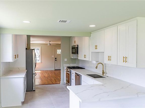 Beautifully renovated brick residence located in an X flood zone featuring 3 BR and 2 BA, blending modern updates with classic charm. A thoughtfully updated floor plan maximizes space and flow, creating an inviting atmosphere for entertaining or relaxing. The heart of the home boasts a stunning kitchen with elegant quartz countertops, brand-new stainless steel appliances, and stylish cabinetry, all carefully planned for both functionality and style. Additional features include new plumbing to the sewer connection, all-new electrical with Cat 6 wiring, new HVAC system, ensuring comfort and reliability, 2 year old roof, tankless hot water heater, a Ring doorbell for enhanced security, and a Nest thermostat for energy efficiency and comfort. Outside, enjoy a spacious yard for outdoor gatherings or gardening, complete with a convenient shed for all your storage needs.