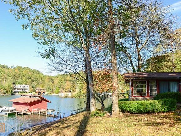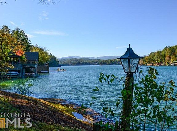 Introducing one of the last 2+ acre Fee Simple lots available on Lake Burton! Located at the end of Murray Cove with incredible distant mountain views, 340.29 feet of shoreline and a gently sloping lawn perfect for a building site. Mature landscaping and stone patios dot this charming lot. The original cabin was built as a fishing lodge. The log siding was lovingly hand-chinked by family members. Unfortunately, not much other that the logs can be salvaged from the cabin. The cabin offers a family room with stone fireplace, hardwood flooring and wagon wheel light fixtures, a galley kitchen, sun room with stone flooring, 3 bedrooms, 3 full bathrooms and a greenhouse. A charming four section shed with the original tin roof provides ample room for storage.