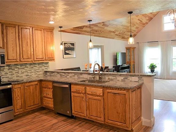 This home, built in 2017, is nestled in a private waterfront community along Crooked Creek and gives the benefit of a remote hideaway resort, but with the convenience of nearby amenities. A newly built boat dock is included with boatable direct access to the Allegheny River. The double lot gives you lots of room for entertaining! Enjoy the views of the river from the large raised deck. The livingroom features vaulted hickory ceilings and floor to ceiling windows overlooking the water! The high end kitchen has custom built Ash cabinets, granite counter tops, and stainless steel appliances. There are gorgeous Hickory ceilings and recessed lighting throughout! The master suite features two options for laundry hookups with washer/dryer included. The second bedroom also has a private bath. There is an oversized two car attached garage. There are 3 additional sheds to store all of your water toys! The 32x17 walkout basement has tons of potential! This is a water lovers dream and a must see!