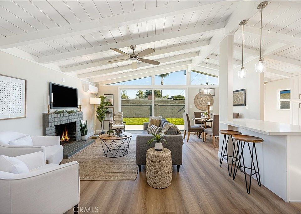 SINGLE STORY 4 bedroom/2 bath HIGHLY updated 1,250 square foot mid-century modern home (majority of the house has vaulted ceilings) in a coveted area of Fullerton. NEW: kitchen & bathrooms (cabinets/island/quartz counters/fixtures/) NEW: all kitchen appliances including refrigerator NEW: flooring (luxury vinyl plank) and baseboards NEW: vinyl dual pane windows throughout majority of house NEW: electrical wiring throughout the entire house NEW: pex piping (water lines) throughout the entire house NEW: mini-splits (zoned AC & Heat) in the living room and master bedroom. Forced air heating throughout the entire house with new ducting. NEW: ceiling fans and light fixtures NEW: water heater NEW: interior doors (all new hardware) and slider NEW: garage door opener NEW: gate, fence, wall-topper NEW: interior and exterior paint NEW: irrigation (sprinkler) system and sod in the front and back yards. Interior laundry room. And did we mention zoned for Troy High School? A final wonderful benefit: Full termite remediation AND clearance has been completed.
