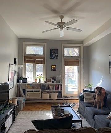 HAVE YOUR OWN PRIVATE YARD for grilling and outdoor entertaining. In addition, there is an upper level terrace with room for guests to sit and relax together, or enjoy your personal deck while working from home! Very spacious one bedroom w ceiling fans and hardwood. Built-in wall A/C units. Lots of closet space. Bedroom easily fits king-sized bed. Washer/dryer room in building. Pets on case-by-case basis. Parking sometimes available for rent in building by other unit owners. Tenant is responsible for any move in/move out fees. Available June 1st. 2022-04-14