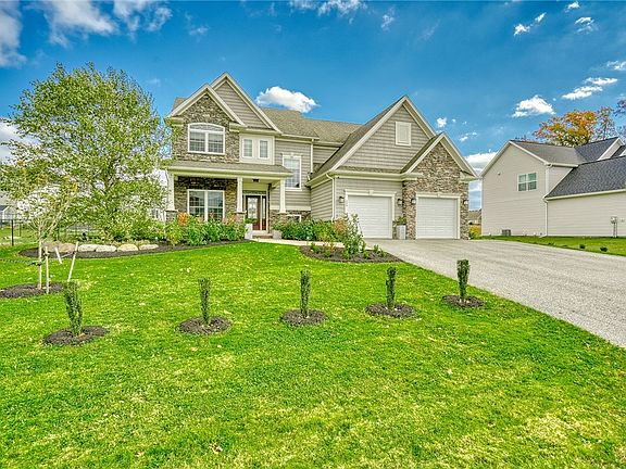 OPEN HOUSE CANCELLED. Welcome to 224 Moore Rd in West Henrietta. Why deal with the hassle & costs of building new when you can settle into this meticulous, like-new home just before the holidays? Originally the Faber Builder Model in 2018, this home comes with all the upgrades. Enjoy a light & airy open living space with 9-foot ceilings & walls of windows. The chef’s kitchen is spectacular, a gorgeous & massive granite island, walk-in pantry, & a wine cooler. The spacious mudroom keeps your entryway organized & clutter-free. A first floor powder room & office complete the lower level. The owner's suite offers a cozy coffee nook & an incredible walk-in closet. The conveniently located second-floor laundry adds to the home’s effortless living experience. The basement boasts extra-high ceilings, an egress window & Superior Walls, easy to finish for extra living space. From your charming covered front porch, enjoy the new curated landscaping with cherry blossom trees, 34 rose bushes, privacy hedges, and an irrigation system to make watering a breeze. All appliances & custom window treatments included. This stunning, turnkey home is ready for you to move in and enjoy.
