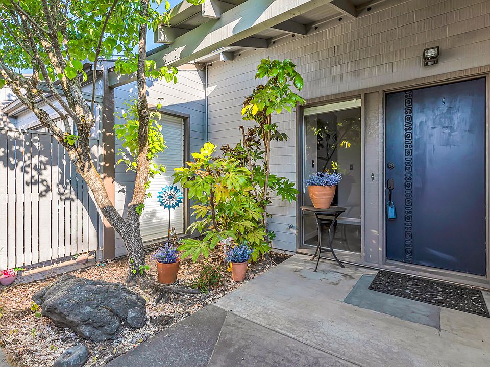 Start your summer in this stunning location. Rare single level townhome located in the Medford Heights Community. Home features 1400 SF, 2 primary bedrooms each with its own updated bathroom, one has a private courtyard patio & the other bedroom has a covered patio. Kitchen has beautiful cabinetry, Stainless Appliances, glass tile backsplash, granite countertop, lots of cupboards for storage and Cherry laminate, slate and tile flooring. Kitchen opens to a large great room, perfect for entertaining with friends. Home has crown molding throughout, ceiling fans, patio with patio furniture included, ceiling fans, new decking installed in 2022, and a storage room that can be locked....all this conveniently faces the in-ground pool and the beautiful common area where you might see turkeys and/or deer. Large 2-car garage with additional storage. New roof in 2024 and the garage roof was replaced in February 2022. This is carefree living at its best. There are CCR's and HOA dues.