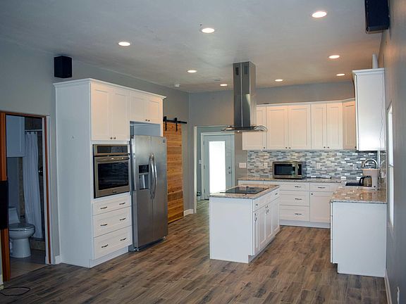 REMODELED to the studs! Come check out this gorgeous 2 bedroom/2 bath home! NEW in 2017: HVAC, roof, Low E windows, siding, electric, wired for surround sound, water and sewer lines, added 2nd bath, 9+' ceilings, barn style doors, Kitchen is to die for with center island, granite countertops, kitchen cabinets upgraded, cooktop is induction, stainless appliances stay, water filtration and softener, instant water heater, lights all LED. New premium composite built deck, new 2 car garage 24x28, plus 12x16 storage barn. Quiet neighborhood has some industrial but nice houses around. New addition being built next door.