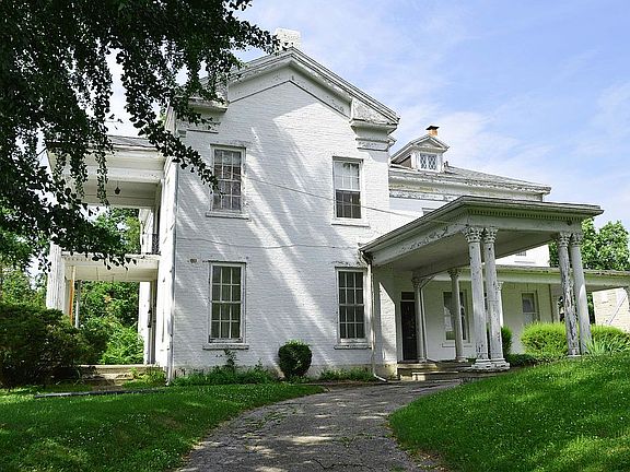 Historic property just north of downtown & river. 3-story all-brick home has 5 bedrooms, library w/ built-ins, formal dining, inlaid hardwood floors, 3-story spiral staircase plus service stairs in back. 3rd floor has two large rooms & several closets. Wrap-around porch, palatial columns, sloping lawn w/ long sidewalk. 2 car detached garage. Original details throughout - leaded glass, subway tile, original woodwork & more. Registered on Indiana Preservation List and National Register of Historic Places - *inclusion in these lists does NOT prevent occupancy or dictate repairs or improvements. Immediate possession.