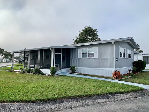 HUGE corner lot home! Completely re-plumbed. Vapor barrier and hurricane tie downs. Fully Furnished. ADT alarm system. Driveway recently painted. Thermopane double pane tilt windows. Beacon Hill Colony is a 55+ community with the 80/20 rule. Located in Central Lakeland, FL. A maximum of two pets are allowed. Large dogs are ALLOWED with no breed restrictions!! Motorcycles Allowed. Lot rent is $583 per month including water and sewer. Pass-on tax is included in lot rent. KITCHEN: 10 x 15 Laminate Flooring Window Coverings Refrigerator - Frigidaire Cook Top - Admiral with Vent Hood Wall Oven - GE Microwave - Magic Chef Garbage Disposal Breakfast Bar: 2 Stools Pantry - 2 LIVING ROOM: 14 x 24 Carpet Flooring Window Coverings Ceiling Fan Sofa Sleeper - Queen Bed Recline Love Seat(s) - 2 End Table(s) - 2 Lamp(s) - 2 Fireplace DINING ROOM: 8 x 10 Carpet Flooring Window Coverings Table with 2 Chairs HALLWAY: Broom Closet MAIN BATH: 5 x 8 Laminate Flooring Window Coverings Single Sink Tub-Shower Mirror Medicine Cabinet MASTER BEDROOM: 13 x 24 Laminate Flooring Window Coverings Ceiling Fan Closet: Walk-In: 4 x 8 Queen Size Bed Dresser(s) - 1 Bedside Table(s) - 1 Chest of Drawers - 1 Lamp(s) - 2 TV Console MASTER BATHROOM: 5 x 10 Laminate Flooring Window Coverings Double Sink Walk-In Shower Mirror Medicine Cabinet Linen Storage GUEST BEDROOM: 11 x 11 Carpet Flooring Window Coverings Closet: 2 x 9 SCREEN ROOM: 10 x 18 Concrete Flooring Chair(s) - 2 Located Off: Front of Home SHED: 12 x 13 Concrete Flooring Shelving Laundry Inside LAUNDRY: Washer - Kenmore Dryer - Kenmore Located Off: Shed EXTERIOR: Vinyl Double Pane Tilt Windows Gutters Single Carport Roof: Metal AC: Unknown COMMUNITY: Clubhouse with Community Room Pool Shuffleboard Courts Dog Walk The above information is not guaranteed. It is the buyer's responsibility to confirm all measurements, fees, rules and regulations associated with this particular park. This mobile home is sold "As Is" as described in the description above. There are no warranties or guarantees on this mobile home.