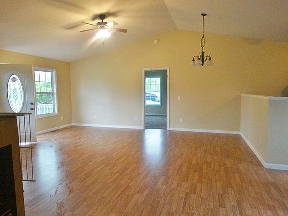 A great Rural Housing potential. Located on a 1.1 acre parcel with a newly-completed 3 bedroom, 2 bath, 1-level home ready for occupancy. Private backyard where many wild turkey and deer are often seen. A concrete pad was left in place when mobile home was moved off by current owners. Pad could be used for added on outside storage building. Septic tank is in good working order.