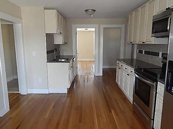 This is the top floor of a duplex. Newly redone, updated appliances, washer/dryer in unit. Inside and outside entrances. Hardwood floors throughout. Pets allowed. 3 bedrooms, 1 bath, eat-in kitchen, dining room and living room. Water included. Water is included in rent. Renter is responsible for gas and electric. No smoking allowed in apartment. Pets are allowed but will require a larger down deposit. Apartment available 3/1/23