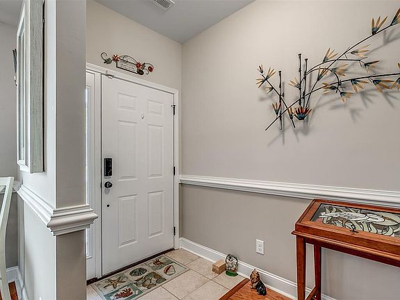 LAKEFRONT living at its finest! Beautiful custom 4BD/2.5BA home with space to breathe around you! Fall in love with the open floor plan and gorgeous lake views. Great room features plant ledge, chair rail and vaulted ceilings and is adjacent to the kitchen with upgraded cabinets, breakfast bar, stainless appliances, granite, tile backsplash and under cabinet lighting. Dining room with tray ceiling and chair rail. Split bedroom plan means master bedroom with tray ceiling and walk-in closet is on one side of the home and 2 more guest bedrooms (one with a tray ceiling) and guest bathroom on the other side. Master bath has double sinks, walk-in shower with seats, comfort height vanities and toilets, and linen closet. Remember this plan also has bedroom 4 just a short walk upstairs with a private 1/2 bath. Enjoy relaxing in the Carolina room with double-hung windows. There's even a tinted mesh-covered pergola and extended patio to continue enjoying outdoor fun! Hardwood in main areas, tile in wet areas and carpet in the bedrooms. So many features and here are just a few: gutters, paver patio with fence on one side, lawn irrigation, transferable termite bond, security system, workbench and shelving in garage, Bucksville Oaks' HOA offers neighborhood pool, boardwalk to the river (no flooding here), and trash removal. Make your offer today!