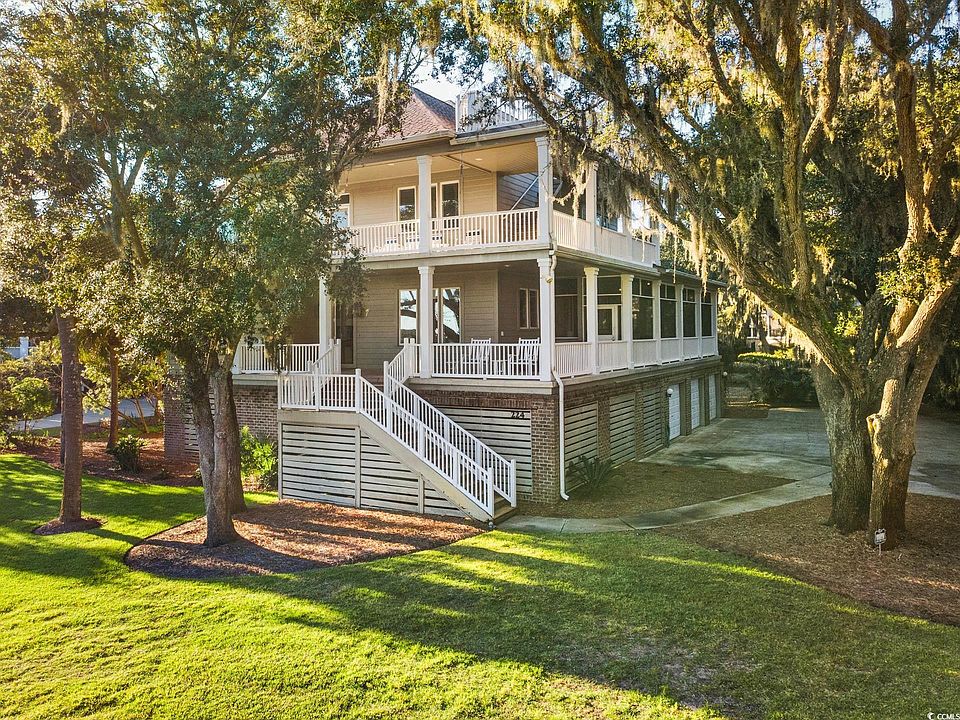 This fully-furnished beautiful home is in the ideal location. Only steps from the DeBordieu Ocean Green community's private beach access and the beach! Also there's a serene pond in the backyard plus beautiful marsh views to enjoy from the front porches. All seven spacious bedrooms have ensuite bathrooms. This beach house is a rare opportunity: owned one family, custom designed by Catalyst and built by Jack Singleton. High ceilings, wide halls make for bright large rooms, perfect for gatherings. The outdoor space is equally wonderful with porches, decks, and even a big screened-in porch. Grand old live oaks grace the beautiful lot. Elevator services all floors! Tons of storage inside and also under this raised beach home. This is a Must See. DeBordieu Colony is a gated community filled with the beauty of nature and abundant wildlife. The community offers a boat ramp with access to the creek and many walkways to the beach. Property owners can join the DeBordieu Club which offers a Pete Dye golf course, fitness facility and a variety of restaurants. Coastal living at its best.