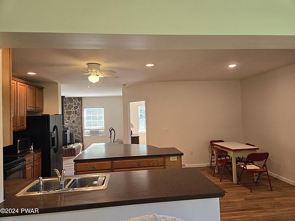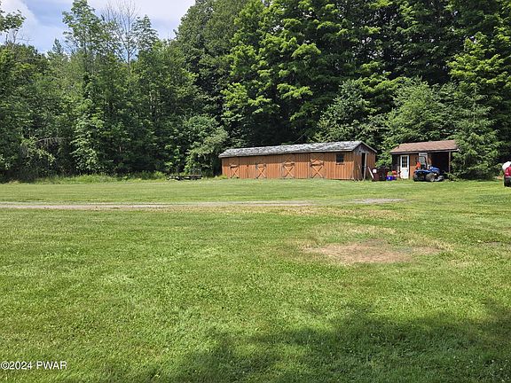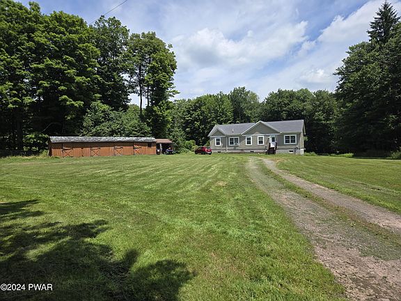 9 ACRES - QUIET COUNTRY LANE - RANCH -Set back into the property is this well maintained ranch with large open rooms and many recent upgrades. All freshly painted, new custom Cali LVP floors through out. Efficient propane gas h/a furnace with back up woodstove. Spacious primary suite offering walk in closet and bath. Kitchen offers expansive countertops and storage, along with full pantry. Den off the Kitchen with woodstove. Large living room to slider and back deck.2 guest rooms and full bath on opposite side of home. Formal dining area with cove ceiling. The walk out basement with many windows above grade offers room for expansion.The property has many perennial flowers, fenced in garden area and large yard for family fun. The owner previously had horses and there is a 4 stall barn with tack shop. Could be used for small farm animals, dogs or workshop. The woods behind home offer views of native deer and peaceful walks. Work from home or 15 minutes to Honesdale for shopping & Hospital.